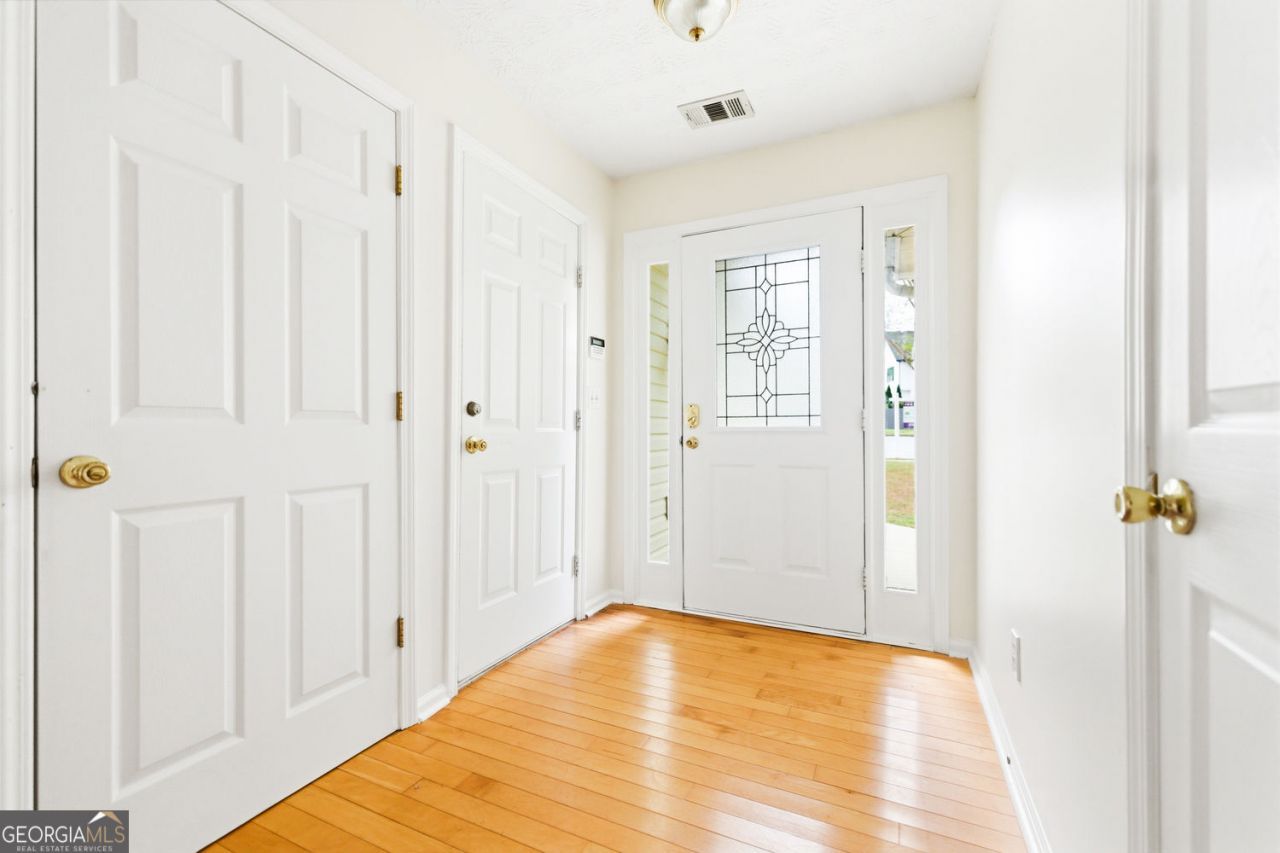 Parkview, Trickum, Knight school cluster huge home on cul de sac invites multi-generational living; teen or nanny suite in the quiet community of Lawrenceville. Expansive garden level home has bright and open flowing space. The vaulted ceiling throughout the living, dining, kitchen and breakfast areas adds airy appeal. Cozy up to the fireplace during holidays; Teach the next generation special legacy recipes in the open kitchen, rolling pastries at the island counter, and enjoying traditions old and new. Beautiful hardwood floors on the main level accent the large primary ensuite with walk-in closet, as well as two secondary oversized bedrooms adjacent to a full tub/shower hall bath. Downstairs, the finished basement features over 2000 sq of space including a huge eat-in second kitchen, recreation room complete with billiard table (remains), equally over-sized living room with stained concrete flooring, full bath with tub/shower, an oversized 4th bedroom with connecting sitting room and walk-in closet and several extra storage areas. Disconnect from the day by relaxing on the terrace level patio, the shaded garden area (or perfect for play set fixtures); grill out on the wood deck just off the kitchen. So many choices to connect with nature and absorb the sun. Welcome home to Jackson Bluff.