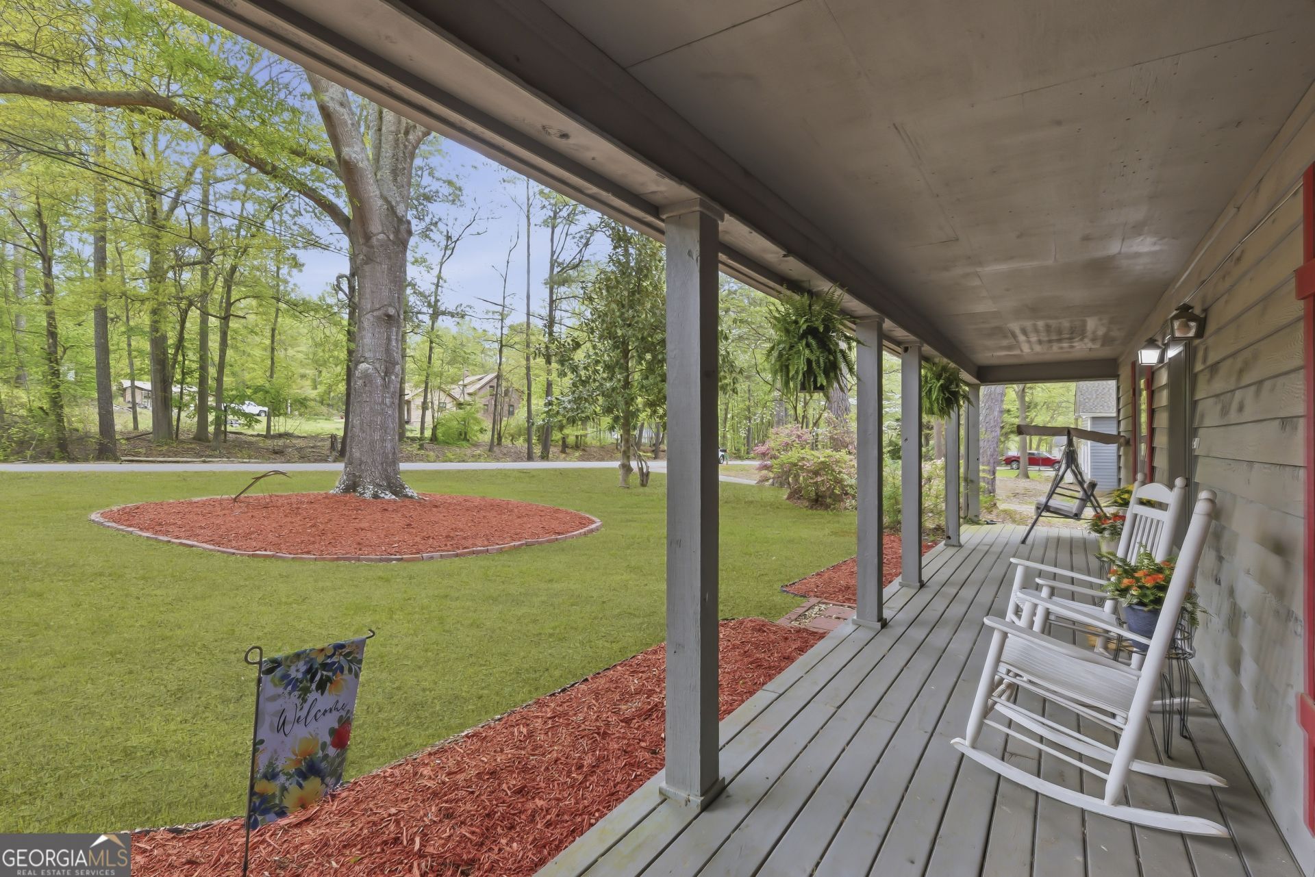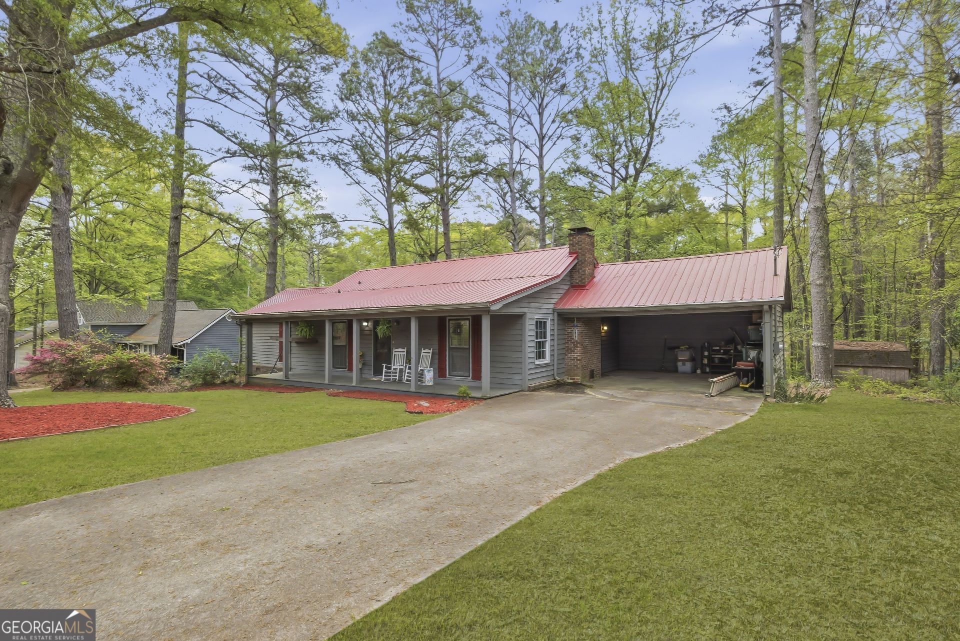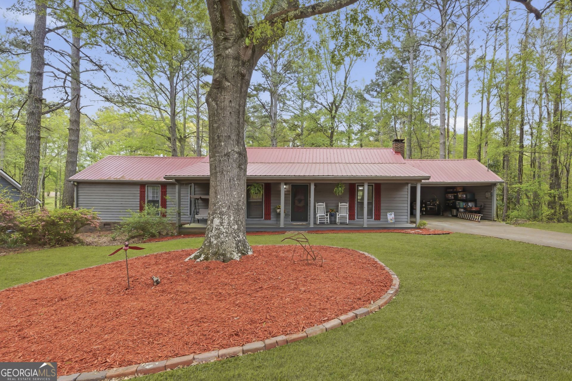 Welcome to this 3 bedroom 2 bath 1980's ranch, filled with timeless comfort and nostalgic charm. As you step through the front door, you're immediately greeted by an inviting main living area highlighted by a brick masonry fireplace and custom wooden built-ins. The layout flows seamlessly into a spacious kitchen, which features a cozy breakfast nook for casual dining and a convenient pantry/laundry room just steps away. Down the hall, you'll find two generously sized secondary bedrooms and a large full bath. The hallway leads to an expansive primary suite. This impressive space boasts an antique mantel fireplace, a dedicated sitting area, and double doors opening onto a private deck. As you enter the en-suite bath, you'll find a walk-in closet stand up shower double vanity, and a large soaking tub. Set on a .68-acre lot, the exterior is designed for relaxation, offering a classic rocking-chair front porch, two rear decks and an attached carport off of the kitchen.