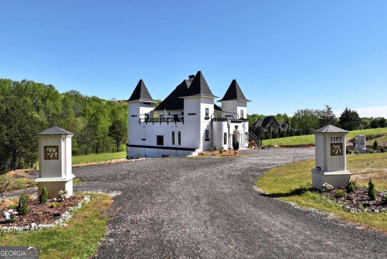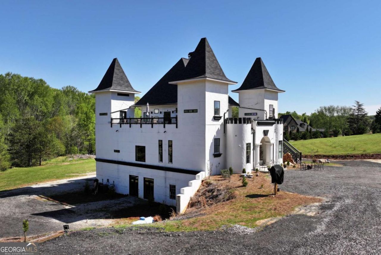 DRASTICALLY REDUCED!! Exciting new progress is being made on this unique Castle De Kennedy! Features a huge Owner's Suite, and an abundant flex space to be finished out to buyer's specifications. 2 Upper Levels offers three bedrooms and a game room, all with baths and access to balconies. The transitional areas are still in progress. The home is constructed with ICF concrete reinforced with rebar, making it sound and storm proof, with a high level of construction throughout. The design allows for up to 2 large kitchens and includes a massive unfinished basement that could serve as an entire separate level with additional bedrooms, kitchen, and living areas. Set on 7 beautiful acres with a winding river in the backyard, there is also potential to construct a second smaller home on the property. With many outside balconies and rooftop areas for outdoor enjoyment, this property offers endless possibilities-perfect for a VRBO, event venue, or even a winery. Its location is highly convenient to Chateau Elan and surrounded by large estate homes. Currently, the home is being used as a movie set for the film Late Night at the Mafia, creating great income for the seller. More pictures to come as completion continues!**Owner financing available at 30% down.