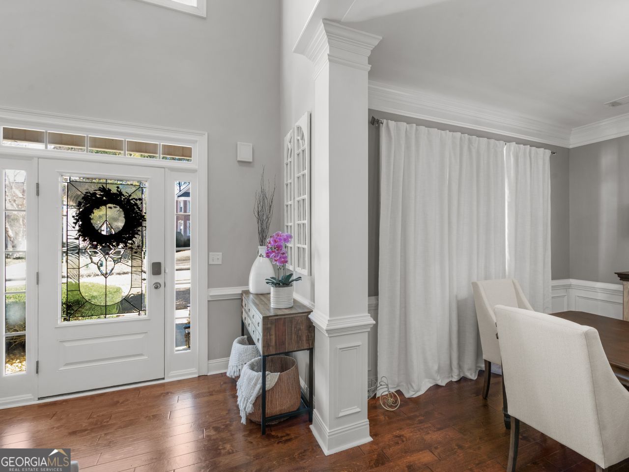 This striking traditional brick home, nestled on a beautiful wooded lot, offers a luxury lifestyle at an extraordinary value in the highly desirable Eagle's Brooke community! The two-story entry foyer, warmly invites you into this delightfully comfortable home with so much natural light. The main level boasts vaulted ceilings and beautiful hardwood floors throughout. Separate dining room seating 12+ guests. The kitchen, showcases solid surface countertops, double wall ovens, cooktop, microwave & pantry. The kitchen seamlessly flows into the adjacent great room/family room with brick fireplace w/gas logs, providing lots of welcoming space for family life. The back patio provides the perfect setting for outdoor grilling & family time. Conveniently located on the first floor, a generously sized owner's suite bedroom featuring a walk-in closet and the owner's bathroom with double sink & jetted tub and separate shower. Upstairs you will find 3 additional generously sized secondary bedrooms as well as a jack & jill bathroom. The HVAC have been replaced recently. Located in one of the most desirable swim & gated communities, this home is the ideal place to raise a family and enjoy an unparalleled lifestyle of luxury, comfort and convenience!