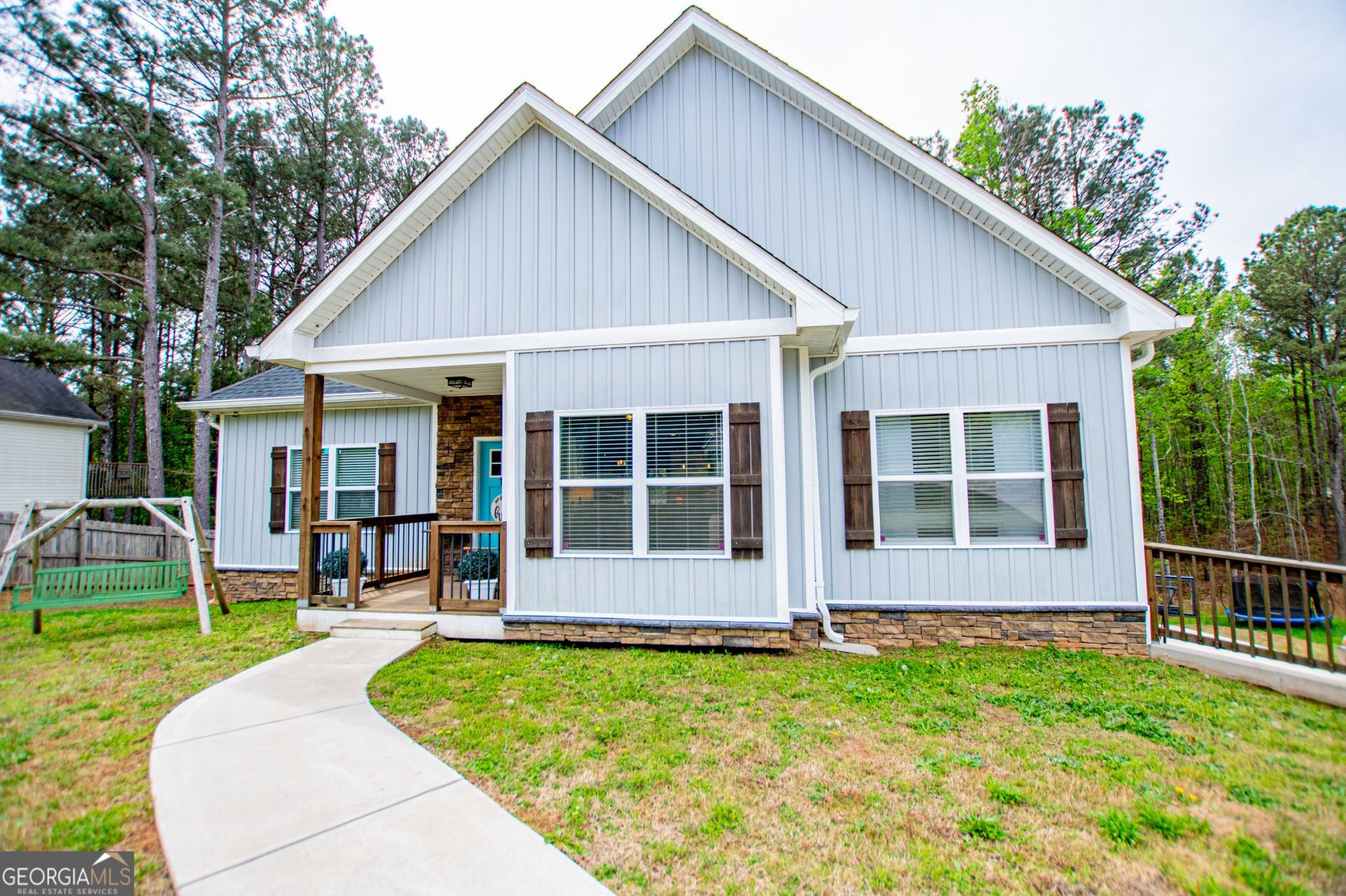 This 2022 ranch sits on a private 0.79-acre lot and has the kind of finishes that make you stop and look twice. The covered front porch with stacked stone entry gives you a good first impression before you even get inside. The great room has high ceilings and LVP flooring that opens right into the kitchen - granite countertops, large island, breakfast bar, tiled backsplash, soft-close cabinets and drawers, and enough dining space to actually use it. The split-bedroom layout works great for families, and the primary suite is done right - tray ceilings, stained barn doors leading to separate his-and-hers closets, dual vanities, and a beautifully tiled shower. Out back, the deck overlooks a quiet, private yard that's perfect for mornings with coffee or evenings with company. The lower level is where this home truly stands out. Most finished basements cut corners - this one doesn't. It's finished at the same high quality as the main level, with a private suite, a fourth bedroom or flex space, and a dedicated media or office area. Whether you need room for guests, a home office, a hangout space, or all three, this basement delivers in a way most homes simply can't. And the garage - don't let two-car fool you. This is an oversized two-car garage with serious square footage. Plenty of room for your vehicles and still enough space left over to set up a legitimate workshop, hobby area, or extra storage without feeling cramped. Minutes to I-20, shopping, and restaurants, and in a school district people specifically move here for. This property is also located in an eligible area for 100% financing - ask us how to get into this home with zero down. This one checks all the boxes - come see it in person before it's gone..