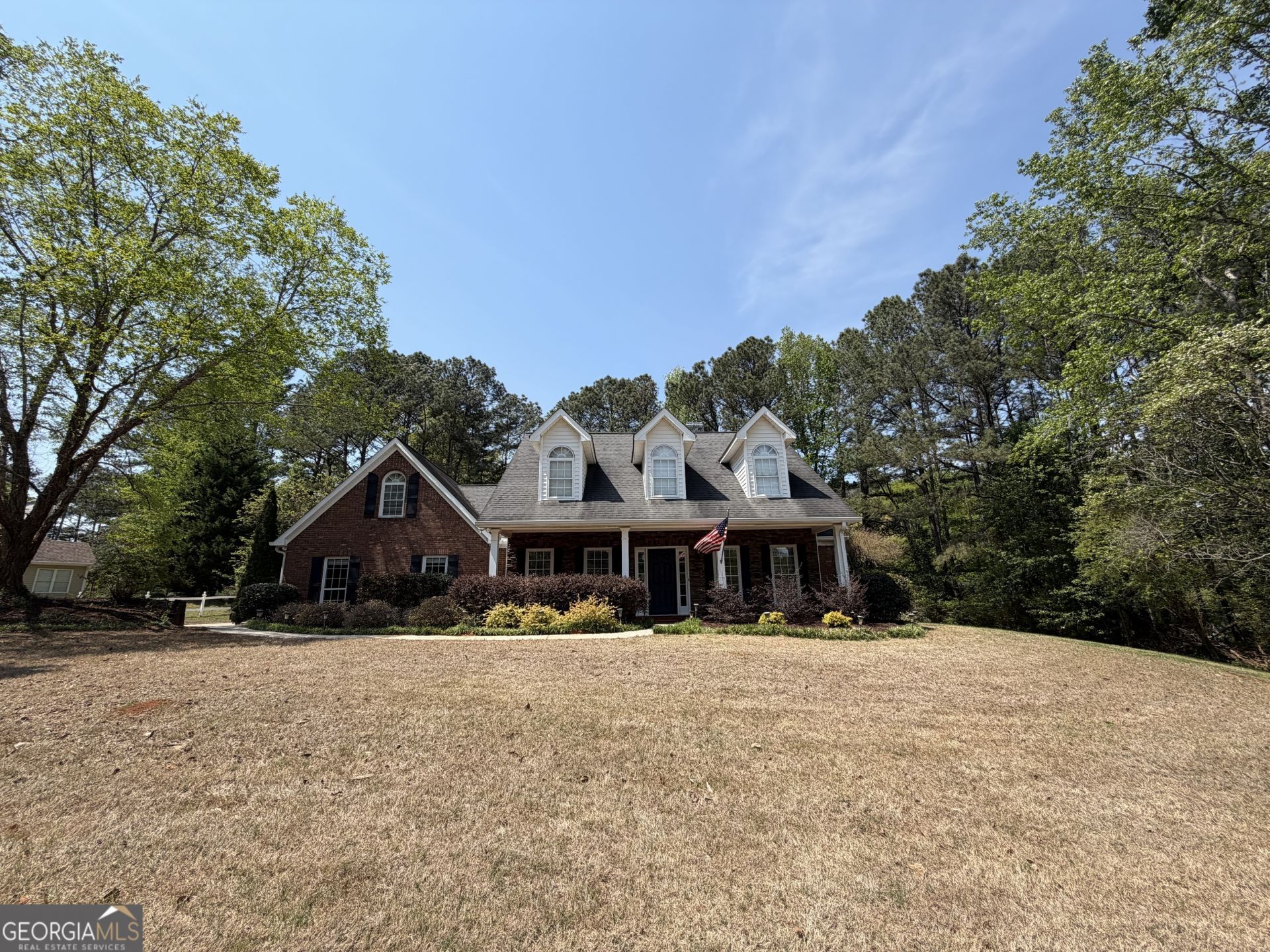 Large, spacious, Ranch Style home with soaring ceilings plus a large real 4th bedroom upstairs. Large covered front porch with stacked stone siding and stone columns. The front of the garage is all brick. Entering the home in the foyer is real hardwood flooring that continues into the formal Dining room / bonus room space for work at home office or flex space. Continuing ahead is a large Family room with a brick fireplace with two pendant hanging lights, mantle and built in cabinet or entertaining center space. The ceilings are high and vaulted with an upgraded chandelier and a higher moon shape picture window above double french walkout door to the large rear covered patio and backyard. The family room is open to the kitchen which has a center island with a double bowl stainless steel sink and a S.S. upgraded faucet and raised bartop. The island also has a stainless steel dishwasher. All Solid surface Countertops throughout the kitchen. All Stainless steel appliances including: built in microwave, electric Range with multi-eye smooth cooktop, SS refrigerator is included as well as washer and dryer. Lots of upper and lower cabinetry with under counter lighting and above cabinetry remote lighting. Unique Brick flooring throughout the kitchen, eat in area, laundry room ( which has built-in upper cabinets), walk-in pantry room and hall down to the large Owner's / primary suite on the main level. Double doors enter the primary bedroom which has a high tray ceiling and upgraded fan with upper and lower lighting, Crown molding and 4 windows with window blinds. Double doors from the owner suite enter into the owners main bathroom which has tiled floorings, a large dual vanity sinks with cultured marble countertop and area for a chair for a makeup area in the vanity cabinet, Vanity has new faucets and upgraded lighting. There is a large Jacuzzi tub and separate Shower. A door leads to a large walk in closet with tons of hanging racks. The main floor also has 2 additional good sized bedrooms and a full tiled bath on the other side of the home from the owner suite as it is a split bedroom plan. One of the secondary bedrooms has a walk in closet and one bedroom has a standard closet. Upstairs is a large real 4th bedroom with a walk in closet, 2 skylights and 2 ceiling fans and walk in door with standing attic access to the attic, HVAC and attic storage area. The home has an oversized 2 car side entry garage with garage opener. The garage has a bumped out storage area in the back, plus a bump out area in the front with a separate side entry exterior door and water heater in that area of the garage. The outside has just been pressure washed and cleaned, fresh landscaping and mulch applied and bushes trimmed up ready to go. The lot is .80 acres according to public records and has a private backyard with a permitted storage building that is locked. Use showing time for appts. On Supra lockbox near front door on the porch. Please lock all doors and cut off all lights when leaving. Check public documents on GA MLS for legal description, plat, septic diagram and sellers Disclosure. NO HOA restriction or HOA fees. Call or email Mark with any further Questions. Priced to sell