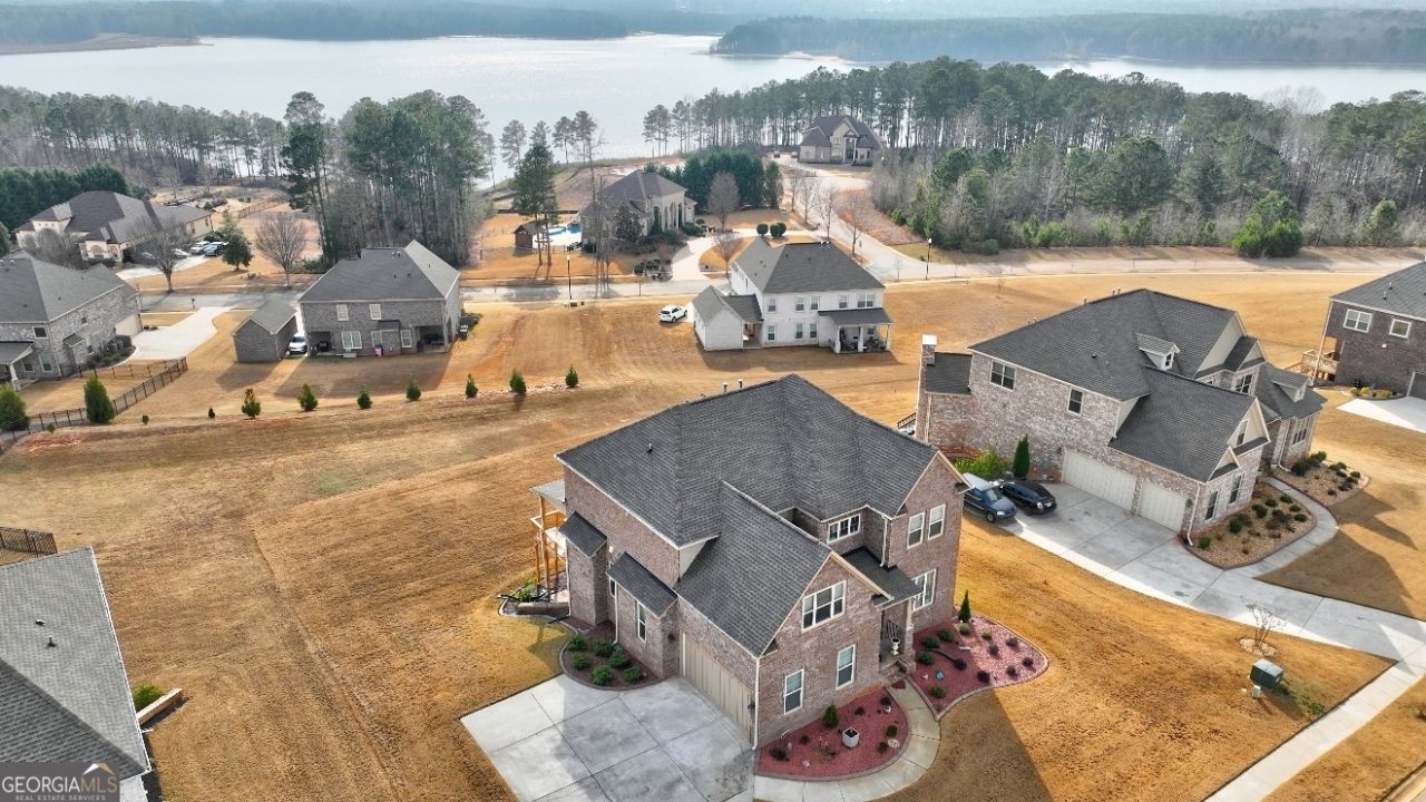 The lake view defines the experience from the moment you arrive. Thoughtfully positioned to capture scenic views of the water, this home offers a peaceful, elevated setting that feels open, calming, and private. Welcome to The Gardenia Plan by Heatherland Homes, where thoughtful design meets beautiful surroundings. This immaculately maintained, nearly new two-story, four-sided brick home offers uninterrupted lake views that create a sense of retreat while preserving privacy. A side-entry garage and a generously sized primary suite on the main level complete the well-planned layout. The primary suite is a true sanctuary designed for rest and quiet moments. A sitting area and direct access to the covered deck allow you to step outside and enjoy the calm presence of the lake at any time of day. The custom walk-in closet, professionally installed by Closets by Design, adds refined organization to a space meant to feel effortless and elevated. Morning light glimmers across the water, while evenings bring soft reflections that naturally slow the pace of the day. With five bedrooms plus a bonus room, the home offers exceptional flexibility for guests, work-from-home needs, or multi-generational living. Upstairs, wood-floored hallways lead to a loft and lounge area that feel open and welcoming, while the spacious media room creates the perfect space to gather, relax, and entertain. The kitchen blends style and function with stainless steel appliances, including an oven and microwave combo, gas cooktop, dishwasher, cabinet vent hood, and soft-close cabinetry. Wood flooring flows throughout the main living areas, adding warmth and continuity. The full basement, already studded for a future bathroom, offers an expansive open foundation ready to be transformed into a luxury entertaining area, home gym, guest quarters, or private retreat tailored to your vision. Step outside and the lake view becomes the true highlight of the home. The expansive backyard opens to sweeping water views that bring a constant sense of calm without the upkeep or activity of direct waterfront living. Enjoy peaceful mornings on the deck, relaxed afternoons outdoors, or evenings watching the sky reflect across the lake at sunset. The yard can be fenced, providing privacy and versatility while preserving the scenic outlook. Landscaping is fully installed across the front, side, and backyard and is supported by a four-zone irrigation system.Located in Heron Bay Lake View, a private, gated golf community in Locust Grove, GA, this home offers more than beautiful design. It offers a lifestyle shaped by nature, tranquility, and the quiet luxury of lakefront living, where the view becomes part of your daily rhythm and something you look forward to every single day.