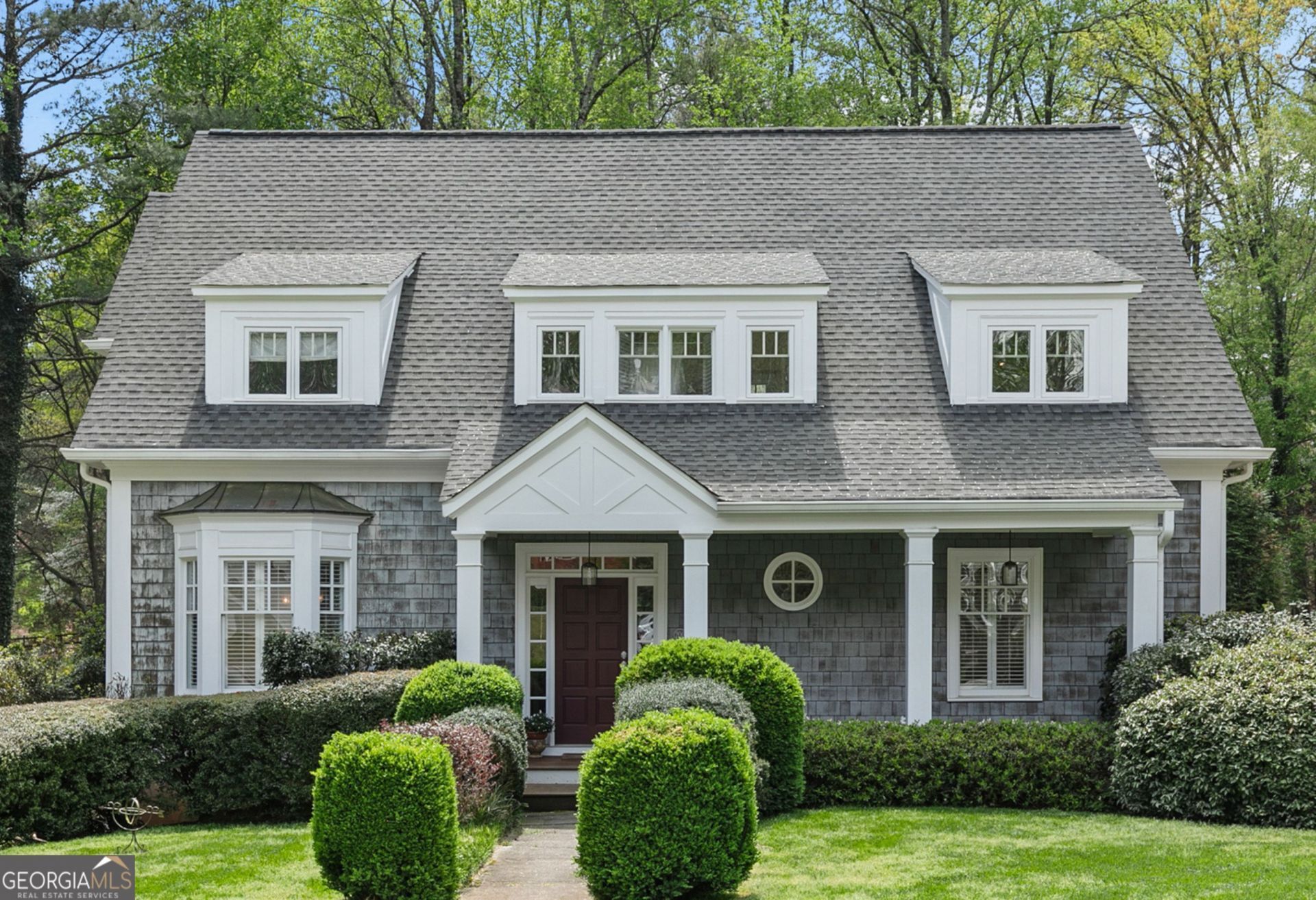 Tucked within the sought-after Horseshoe Bend community, this custom-built Cape Cod on a private cul-de-sac offers timeless character paired with thoughtful updates and everyday functionality. Set on a beautiful lot, the home blends classic architectural details with spaces designed for how we live today. A welcoming, rocking chair-worthy front porch opens to a foyer featuring African slate flooring that extends through the hall and powder room. To the left, the formal living room showcases rich maple hardwoods, while the main level also includes a spacious bedroom with full bath ideal for guests, in-law living, or a secondary primary suite. Further into the home, the living room offers seamless connection to the kitchen and access to the screened porch and deck. Just beyond is one of the home's most striking features a stunning two-story library with coffered ceilings, custom cherry built-ins, and ladder, creating a space that feels both refined and inviting. The kitchen is designed for both everyday living and entertaining, featuring custom cherry cabinetry, a Sub-Zero refrigerator with matching panels, under-cabinet lighting, and a sunlit breakfast area with built-in desk and bar seating overlooking the large backyard. A walk-in pantry with extensive shelving and cabinetry adds functionality, while the full-size laundry room includes a convenient chute from the primary closet. Upstairs, the primary suite offers a private retreat with vaulted ceilings, a window seat with hidden storage, and a spa-like bath complete with radiant heated floors, separate vanities, soaking tub, and walk-in shower. Two additional bedrooms share a jack and jill bathroom and a dedicated office with built-ins provide flexibility for a variety of needs. Outdoor living is equally inviting, with a screened porch and Ipe deck overlooking the expansive fully fenced backyard perfect for both quiet mornings and entertaining. The unfinished daylight walkout terrace level offers excellent potential for future expansion, featuring high ceilings, abundant natural light, and space already stubbed for an added bathroom. Located within the prestigious Horseshoe Bend community, residents enjoy optional membership to the renowned Horseshoe Bend Country Club, offering championship golf, tennis, swim, dining, and a vibrant social calendar all just minutes from historic downtown Roswell, top schools, parks, and shopping.