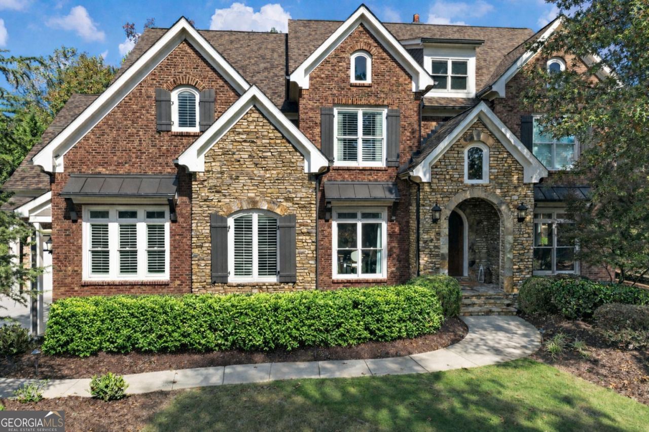 Featured on the 2025 Chateau Elan Tour of Homes A rare opportunity to own a European-inspired brick and stone luxury residence in the gated golf course community of Chateau Elan-where timeless design meets modern work-from-home living. Thoughtfully renovated and beautifully maintained, the home offers two home offices on separate floors, a showstopping chef's kitchen, serene outdoor living with walk out patio in a private backyard, and an expansive primary suite retreat. Natural light fills every room, highlighting soaring ceilings, custom millwork, hardwood floors, and designer finishes throughout. The seamless flow between the great room, kitchen, and outdoor spaces makes this home ideal for both everyday living and elegant entertaining. Chef's Kitchen & Butler's Pantry A professionally designed, full-scale renovation created a true showpiece. * White Santorini Extra quartzite natural stone countertops with custom beveled edges * Two double-stacked quartzite islands, including a dramatic 10.5-ft statement island * Matching quartzite backsplash * Sub-Zero refrigerator, Jenn-Air ovens and 6-burner gas stove, Bosch dishwasher * Lighting by Chapman & Myers (Visual Comfort) * Filtered water at prep/beverage sink * Inset cabinetry with hidden outlets, under-cabinet lighting, and upper cabinets to the ceiling with glass fronts and interior lighting The newly built custom butler's pantry features imported and professionally restored 19th-century French antique doors, new cabinetry, appliance garage, charging drawers, deep trash and recycling drawers, vertical sheet storage, pot and pan drawers, floating wood shelves, and integrated wine and beverage refrigerators-both beautiful and exceptionally functional. Additional Main-Level Living & Design Highlights * Guest suite on main level * Grand paneled office * Soaring ceilings and extensive custom trim * Hardwood floors throughout the main level and primary suite * Dining room with feature brick wall * Custom shutters, newly installed designer lighting, and fresh Benjamin Moore paint-better than new * Updated drop zone & laundry room with brick flooring, deep sink, new quartzite counter, refreshed cabinetry, new lighting, and Rejuvenation hardware Primary Suite Retreat The upstairs primary suite creates a peaceful, private retreat, complemented by three additional bedrooms on the upper level. A convenient main-floor bedroom provides exceptional flexibility for guests. * Fireplace and reading area * Adjoining flex room ideal for a second office, nursery, or wellness space, featuring custom built-ins, beverage refrigerator, coffee station, and floating cedar shelves * Two separate custom walk-in closets with mirrored dressing area * Spa-inspired bath accented with custom cedar beams Additional Interior Features * Five bedrooms total, all with generous closets * Vaulted ceilings in upstairs bedrooms * Custom interior trim including 10+ inch ceiling moldings * New window treatments throughout the home Basement, Parking, Exterior & Systems * Large pre-plumbed unfinished basement ready for your vision-gym, home theater, golf simulator, or additional living space * Two separate garages (three vehicles) plus additional outdoor parking pad * Covered porch and updated patio overlooking a priv