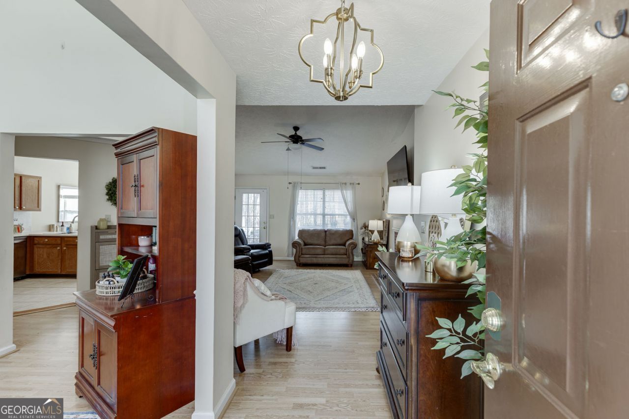 Beautifully maintained 3-bedroom, 2-bath ranch home in Gwinnett County located in the desirable Charleston Park community. Offering over 1,750 square feet of single-level living, this home combines comfort, functionality, and convenience in one of the most sought-after areas near Hamilton Mill and I-85. Step inside to discover a bright, open-concept floor plan featuring vaulted ceilings, abundant natural light, and durable laminate flooring throughout. The spacious family room with gas fireplace creates a warm and inviting atmosphere, perfect for relaxing or entertaining guests. The eat-in kitchen offers ample cabinetry, a pantry, and seamless flow into the main living areas-ideal for everyday living and hosting. A separate dining room adds flexibility for formal gatherings or a home office setup. The oversized primary suite on the main level is a true retreat, featuring a double vanity, soaking tub, and separate shower, along with generous closet space. The thoughtful roommate floor plan provides privacy and comfort for family or guests. Enjoy outdoor living with a private, level, fenced backyard and rear deck, perfect for entertaining, pets, or relaxing evenings. Additional highlights include a 2-car garage, double-pane windows, and a well-maintained exterior with storage space. Located in a swim and tennis community with sidewalks and optional amenities, this home is zoned for Mill Creek High School and offers easy access to shopping, dining, parks, and major commuting routes including I-85 and GA-324. Whether you're a first-time homebuyer, downsizing, or looking for a move-in ready ranch in Dacula, this home checks all the boxes with low-maintenance living, prime location, and strong long-term value.