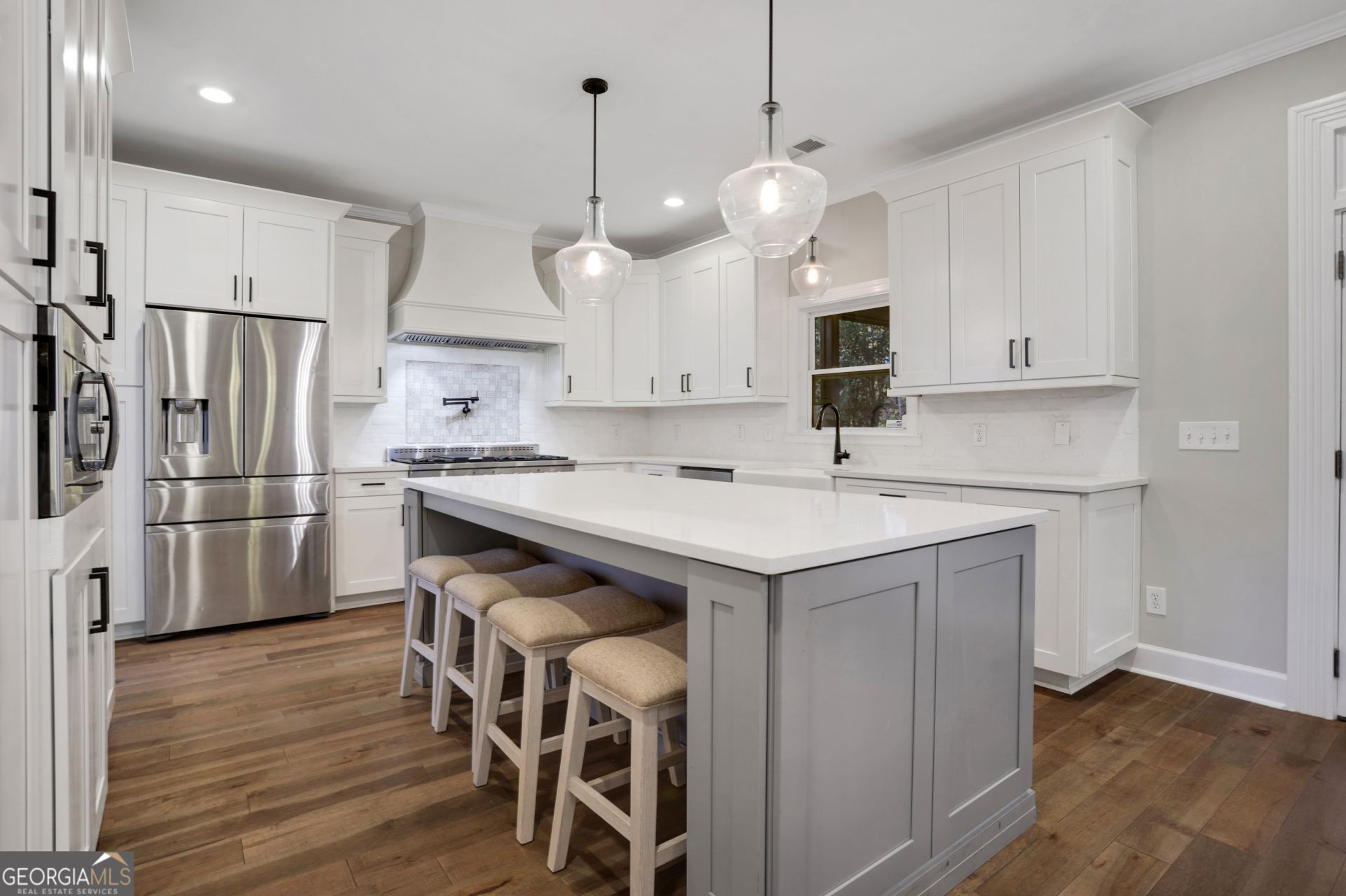Discover this stunning 3 story stunning and spacious 7-bedroom, 4-bathroom home located at in highly desirable South Forsyth County-zoned for top-rated Lambert High School and less than one mile from Cumming, Alpharetta, Johns Creek, and Suwanee. This expansive residence offers an ideal layout where everyone can enjoy their own private retreat. Natural light fills every room, creating a bright, warm, and welcoming atmosphere throughout. The Main level you're greeted by a dramatic two-story foyer and living room, new floors and paint throughout which flows seamlessly into the formal dining room. The large updated kitchen features high-end stainless steel appliances, Alexa enabled kitchen faucet, large island an adjacent breakfast area that opens to a spacious family room with a cozy gas fireplace and serene views of the backyard. The main-level bedroom and full bathroom offer convenience and comfort for guests or multigenerational living. The private, picturesque backyard is designed for year-round enjoyment with a large screened-in porch, irrigation system and private backyard. The Second Level offers an oversized primary retreat that boasts walk-in closet and a spacious renovated en-suite bathroom with heated floors. Three additional large secondary bedrooms with connected Jack-and-Jill bathroom. The Third Level is perfect for young adults, extended family, or flexible living. It has a loft or office space, two more bedrooms and a full bathroom. Community features include a saltwater pool and playground. Situated close to Caney Creek Preserve, Big Creek Greenway, and Sharon Springs sports complex, the home also offers quick access to popular shopping and dining destinations like Halcyon and The Collection at Forsyth. Easy commuting via GA 400 and Hwy 141. This exceptional home combines modern comfort, abundant space, and unbeatable convenience-offering the perfect balance of nature and contemporary living.