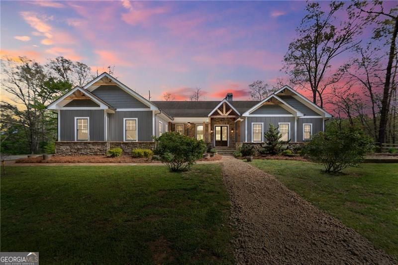 Welcome to 319 River Valley Road in Dawsonville, Georgia-a stunning 6-bedroom, 5 full bath, and 1 half bath home on a fully finished basement, set on an incredible 20.95 private acres along the Etowah River, offering the perfect blend of space, comfort, and natural beauty. Inside, you're immediately welcomed by soaring ceilings and striking architectural details, including a dramatic vaulted ceiling with rich wood paneling that adds warmth, texture, and character to the living space. Large windows fill the home with natural light, enhancing the open and inviting feel throughout. The kitchen is both functional and stylish, featuring beautifully stained wood cabinetry, granite countertops, and a spacious island with an extended bar area-ideal for casual dining and entertaining. A unique double sink setup adds extra convenience for busy households or hosting guests. The primary suite offers a relaxing retreat with a spa-like bath, complete with a separate tub and shower and dual vanities. With six generously sized bedrooms and multiple bathrooms, there is plenty of space for family, guests, or flexible living arrangements. The fully finished basement provides even more room to spread out, perfect for a media room, home gym, or additional living quarters. Step outside to enjoy the peaceful surroundings from the elevated, screened-in back porch-an ideal spot for morning coffee or evening relaxation. The expansive acreage offers privacy, room to explore, and endless possibilities. Additional features include two detached storage buildings, providing ample space for equipment, hobbies, or extra storage needs. With its unique character, spacious layout, and nearly 21 acres of land, this property is a rare opportunity to enjoy quiet, private living while still being conveniently located near Dawsonville's amenities.