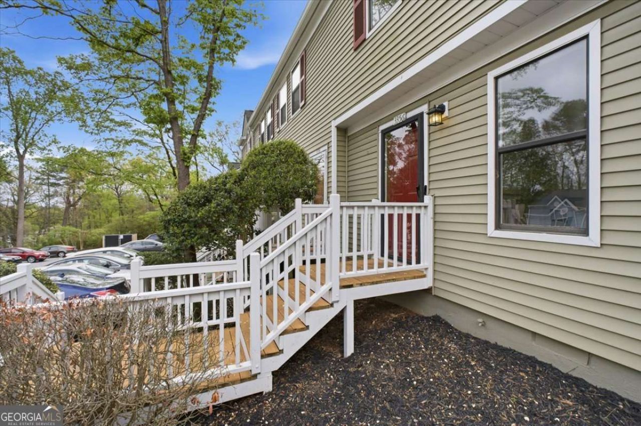Rare opportunity to own a 1-bedroom townhome in Peachtree Corners. This unit features a bright, open main level with a spacious living room centered around a fireplace, flowing seamlessly into a dedicated dining area and kitchen with ample cabinet storage and functional layout. Both TV's are included in the sale. The oversized bedroom upstairs offers flexible space for a sitting area or home office along with a spacious BONUS ROOM attached. The en-suite bathroom features newly installed LVP flooring. Enjoy a private rear patio-perfect for outdoor seating or grilling-with a wooded backdrop providing added privacy. The home also includes in-unit laundry and generous closet/storage space throughout. Property is sold As-Is. Easy access to Peachtree Industrial Boulevard and Interstate 285 for a smooth commute to surrounding areas. Just minutes from shopping, dining, and entertainment at The Forum on Peachtree Parkway and Peachtree Corners Town Center. Nearby grocery options include Publix, Kroger, and Trader Joe's, with outdoor recreation available at Jones Bridge Park along the Chattahoochee River.