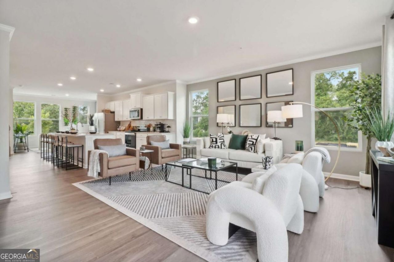 Welcome to The Overlook at Peachtree Corners, where modern design meets everyday convenience. This brand-new, three-story townhome offers 4 spacious bedrooms, 3 full bathrooms, and a convenient half bath, perfectly designed for today's lifestyle. The open-concept main level is bright and inviting with Revwood flooring throughout the main living area, featuring a contemporary kitchen with 42 soft-close cabinetry, quartz countertops, a large center island, and stainless-steel appliances, ideal for both entertaining and daily living. The top-floor owner's suite provides a private retreat with an en-suite bath and a generous walk-in closet. Two additional upstairs bedrooms share a full bath, while the lower-level bedroom offers flexibility as a guest suite, home office, or private retreat. Ideally located in the heart of Peachtree Corners, enjoy quick access to I-285 and I-85, premier shopping at The Forum, and a wide variety of dining and entertainment options. Additional highlights include a rear-entry two-car garage, low-maintenance living, and stylish finishes throughout. This townhome delivers the perfect blend of convenience, style, and location-modern living close to everything you love.