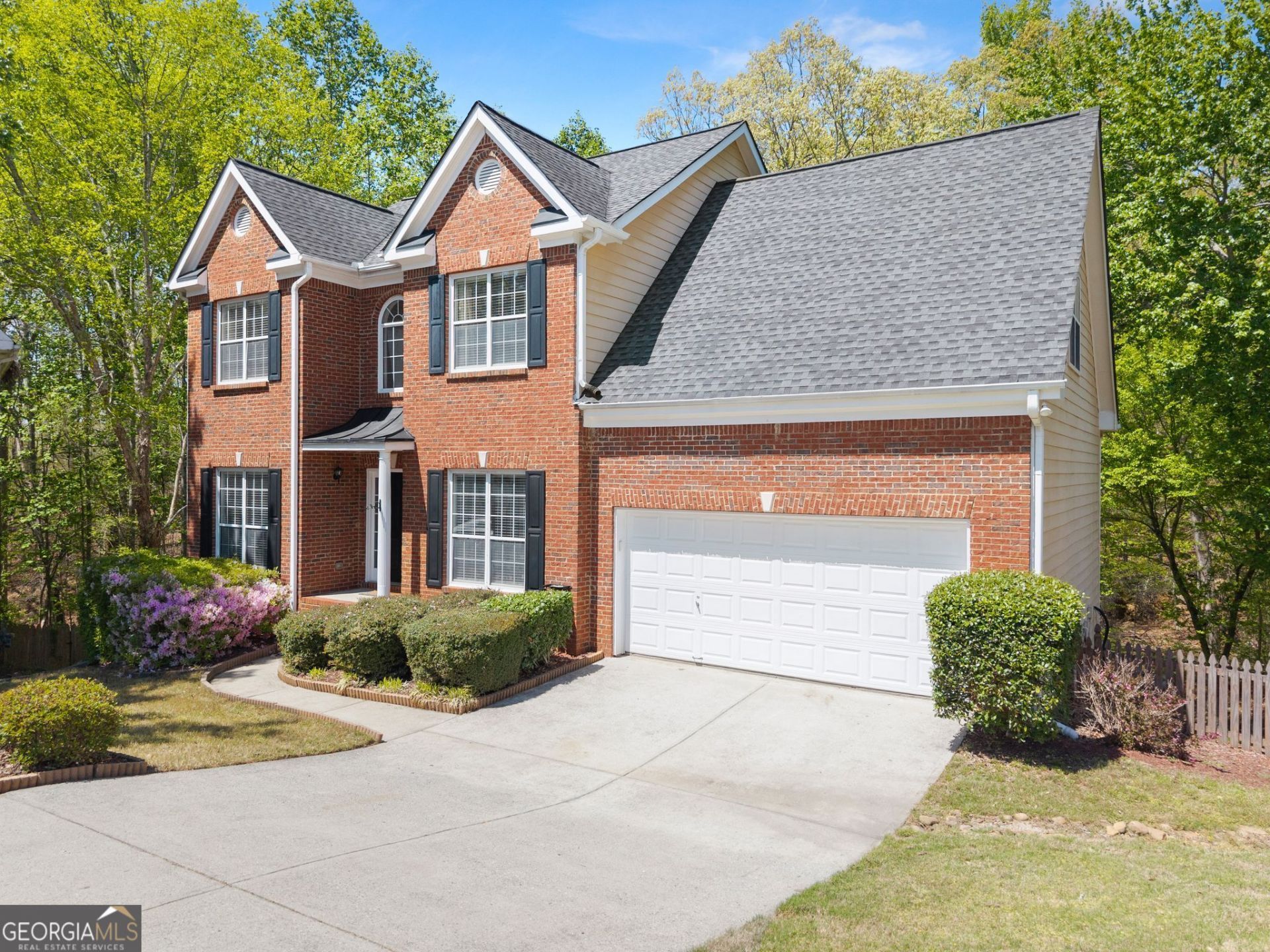 Welcome home to 3656 Castle View Court! This charming brick-front home is the perfect blend of coziness, community and convenience nestled right in the heart of sought-after Suwanee, GA! Commutes are a breeze from this property with close access to Highways 85, 985, and 20 as well as McGinnis Ferry Rd, Lawrenceville-Suwanee Rd, and Peachtree Industrial Blvd. There's plenty to choose from for food, recreation and entertainment as well since this property is just minutes from Suwanee Town Center, multiple Parks and Greenways, dining and grocery. The front door opens to a bright and welcoming entryway with a designated home office on the left and separate formal dining room on the right. The foyer leads to a spacious family room area gleaming with natural light and charm and access to the large back deck overlooking the serene, wooded scenery of the backyard. The kitchen features stainless steel appliances, kitchenette with bay windows, granite countertops, white cabinets and the always comforting view of the family room. The laundry room, interior garage access and half-bath round out the rest of the main level. Upstairs contains 4 bedrooms and the 2 full baths. The primary suite offers a large bedroom with tray ceilings and a primary bathroom complete with dual vanity, separate tub and shower, and vaulted ceilings. The basement offers additional cozy living space with a completely finished living area and additional bedroom/office. Basement is stubbed for another bath and does also feature a couple of unfinished storage areas containing the furnace and water heater. Additional features of this home include a 220-volt outlet in the garage complete with an EV charger, a partially fenced in back yard, and a cozy cul-de-sac lot that encourages community. Priced competitively, this home is a rare opportunity to own in a prime Suwanee location. Schedule your private showing today!
