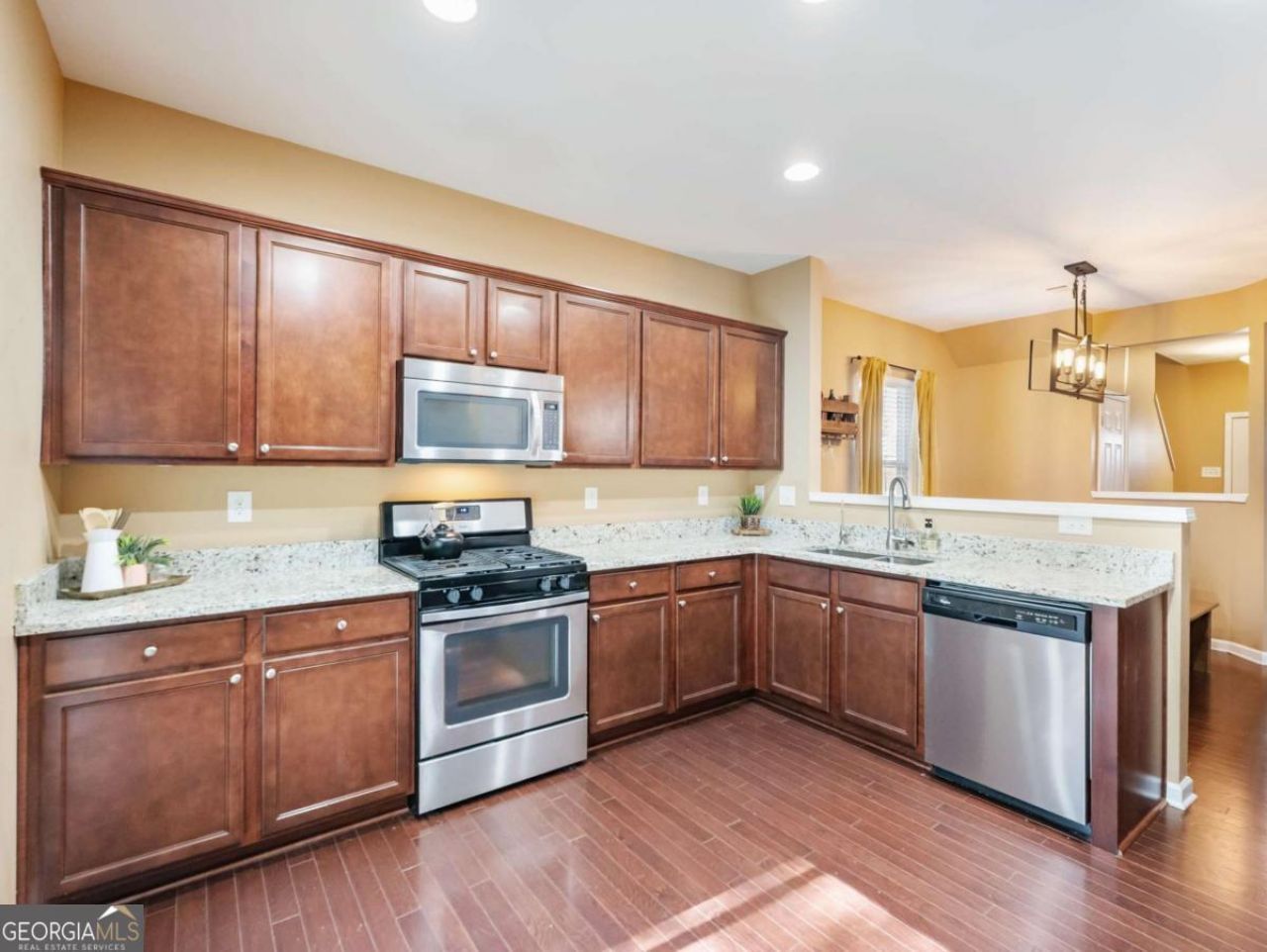 If you've been searching for a home that checks every box-space, style, and a prime sugar hill location-this is the one! Located in the highly sought-after Barrington Estates swim/tennis community in Gwinnett County, this move-in ready 4-bedroom, 2.5-bath home delivers the open floor plan and flexible living spaces today's buyers love. Step inside to hardwood floors and a bright, inviting kitchen featuring granite countertops, white cabinetry, and a seamless flow into the spacious family room-perfect for entertaining and everyday living. The main level also includes a flexible bedroom or home office, ideal for remote work, guests, or multigenerational living. Upstairs, unwind in the oversized primary suite complete with a walk-in closet and private en-suite bath featuring double vanities, soaking tub, and separate shower. A large loft adds valuable flex space for a media room, playroom, or second office. Two secondary bedrooms offer walk-in closets and share a full bath. Enjoy the convenience of an upstairs laundry room with built-in shelving. Out back, a private, level backyard backs to wooded greenspace with no rear neighbors-perfect for relaxing, entertaining, or pets. Barrington Estates offers swim/tennis amenities and a welcoming community feel. Prime location near lake lanier, gary pirkle park, walking trails, playgrounds, shopping, dining, and top-rated gwinnett county schools, with easy access to major commuting routes. Special financing available! Up to $2,500 lender credit toward closing costs.