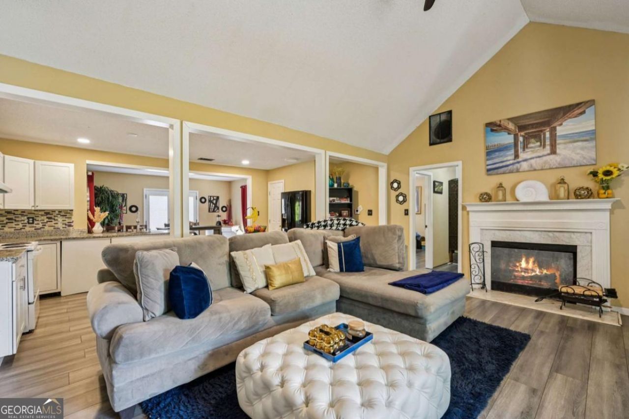 Set on a sweeping front yard, this charming ranch-style home welcomes you with effortless curb appeal and easy one-level living. Step inside to soaring vaulted ceilings and sun-drenched living spaces, where a cozy fireplace creates the perfect place to gather and unwind. The bright kitchen shines with crisp white cabinetry, granite countertops, a tile backsplash, and a breakfast bar, all flowing seamlessly into the open dining area with easy access to the back porch, ideal for indoor-outdoor living year-round. The home offers three spacious bedrooms and two baths, including a relaxing primary suite with its own private en-suite bath. Out back, enjoy a screened-in porch perfect for entertaining in any season, along with an additional deck ready for grilling and gatherings. The large, flat, fenced backyard provides plenty of green space to play, garden, or simply relax. Topped off with a brand-new roof, this home blends comfort, style, and peace of mind in one inviting package. Book your tour today!