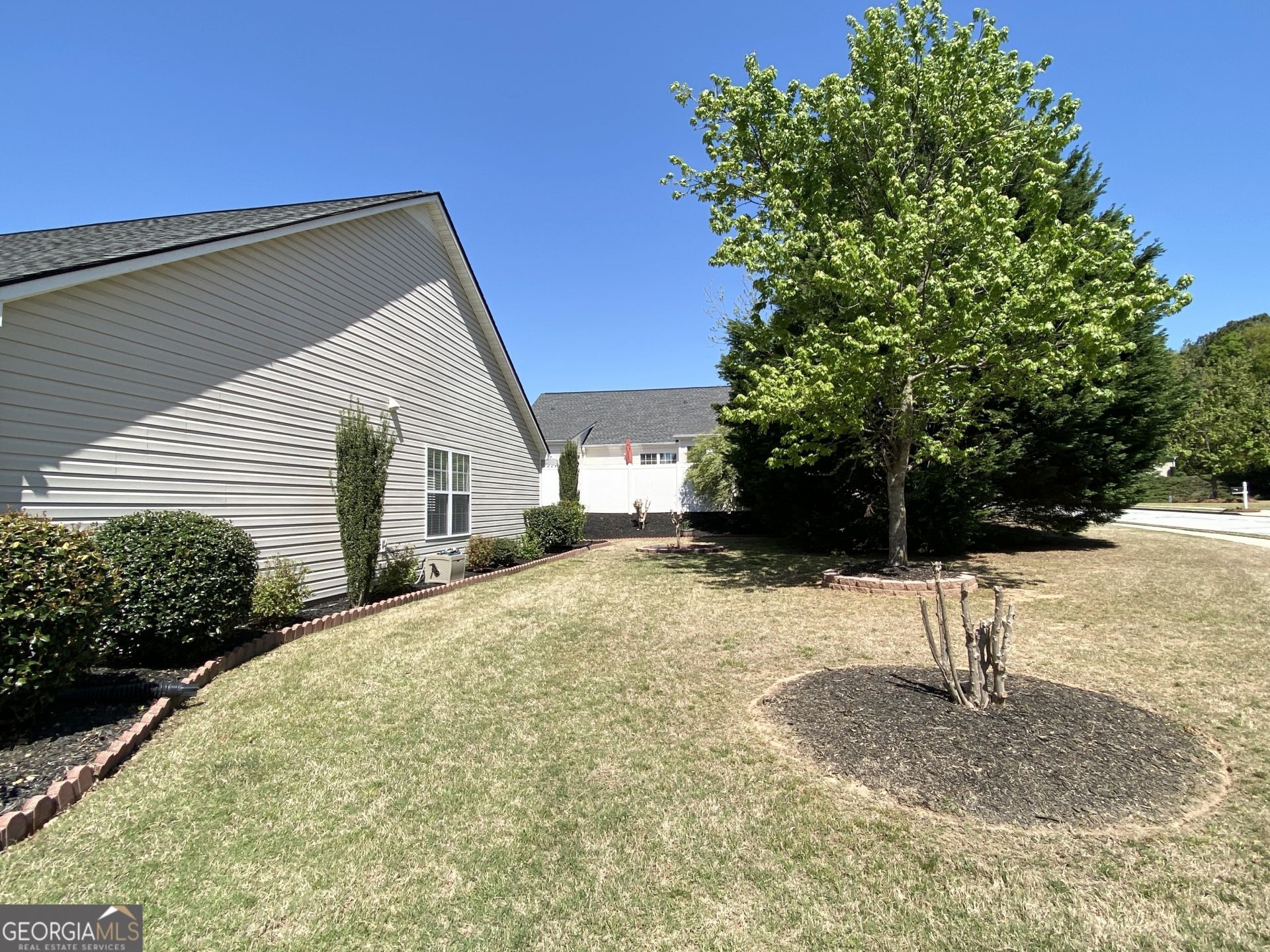 Welcome to easy, elegant living in this beautifully maintained home nestled within a sought-after 55+ community in the heart of Loganville. From the moment you arrive, the impeccably landscaped yard sets the tone for the care and pride of ownership found throughout. Step inside and experience a sense of calm with soft, neutral tones and durable luxury vinyl plank flooring that flows seamlessly through the main living areas. The vaulted family room, anchored by a cozy fireplace, is filled with natural light creating a warm and inviting space to relax or gather with friends. Designed with both comfort and entertaining in mind, the home features a formal dining room just off the kitchen. The kitchen itself offers rich stained cabinetry, new stainless steel appliances, and a charming breakfast area perfect for casual mornings.The thoughtfully designed split-bedroom layout provides privacy, with both the primary and secondary bedrooms featuring their own ensuite baths ideal for hosting guests or accommodating your lifestyle needs. Recent updates throughout make this home truly move-in ready. Outdoors, you'll find an expansive,fenced patio stretching the length of the home, complete with a retractable pergola, multiple seating areas, and a dedicated grilling space perfect for enjoying quiet evenings or lively gatherings with your human and furry companions.Parking is a breeze with the attached 2 car garage. Enjoy the ease of community living with amenities including a clubhouse, swimming pool, and pickleball courts, all just steps from your door. Plus, Ingles is within walking distance for everyday convenience. This is more than a home it's a lifestyle. Don't miss your opportunity to make it yours. Home requires 1 hour notice to show.Seller will need a 60+/- day closing,temporary occupancy or lease/back.Property taxes are reflective of a senior exemption.